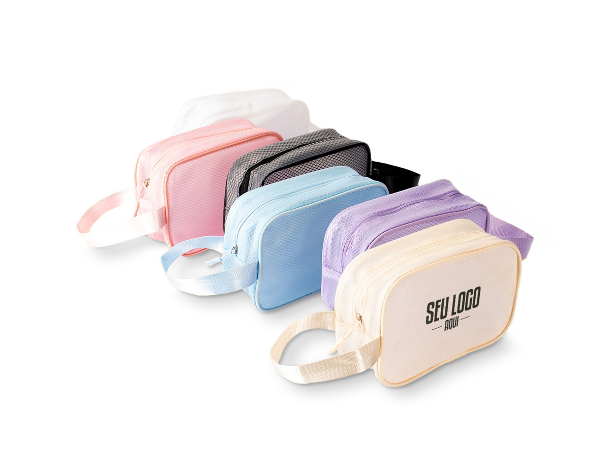 Descrição: Nécessaire confeccionada em EVA impermeável, material leve, flexível e de fácil higienização, ideal para proteger itens pessoais contra umidade. Possui abertura e fechamento em zíper, garantindo segurança no armazenamento de cosméticos, acessórios ou objetos de uso diário. Conta com alça lateral em nylon, que facilita o transporte e o manuseio em diferentes situações, como viagens, academia ou rotina profissional. Funcional e versátil, é um brinde corporativo de ampla aceitação, associado à praticidade, durabilidade e presença constante da marca no cotidiano do usuário.